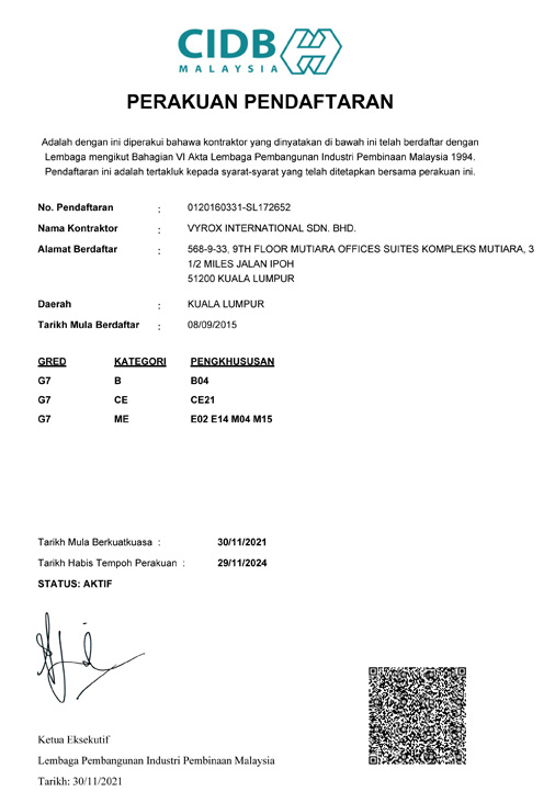Has been a profoundly growing in name and ever since has been working with a growing passion and quality, transforming into VYROX International Sdn Bhd.