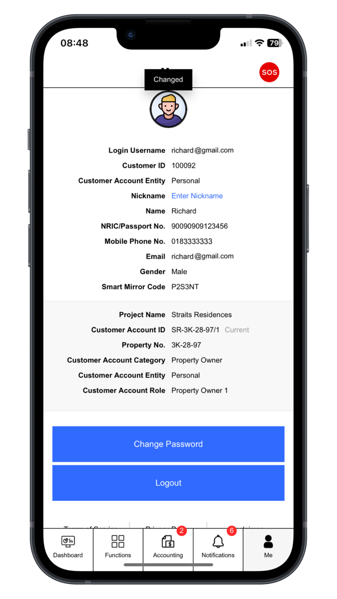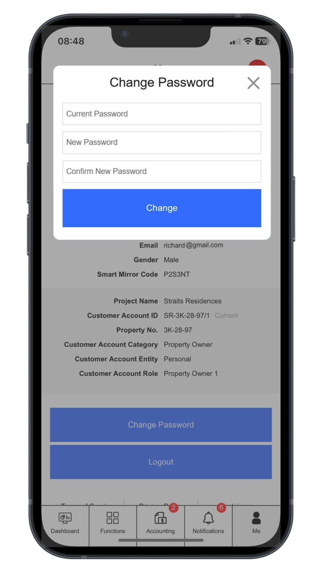 Click “Change Password”. Enter current password, new password and comfirm new password
