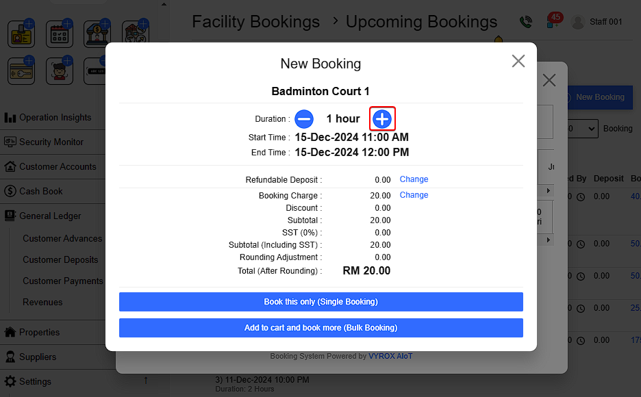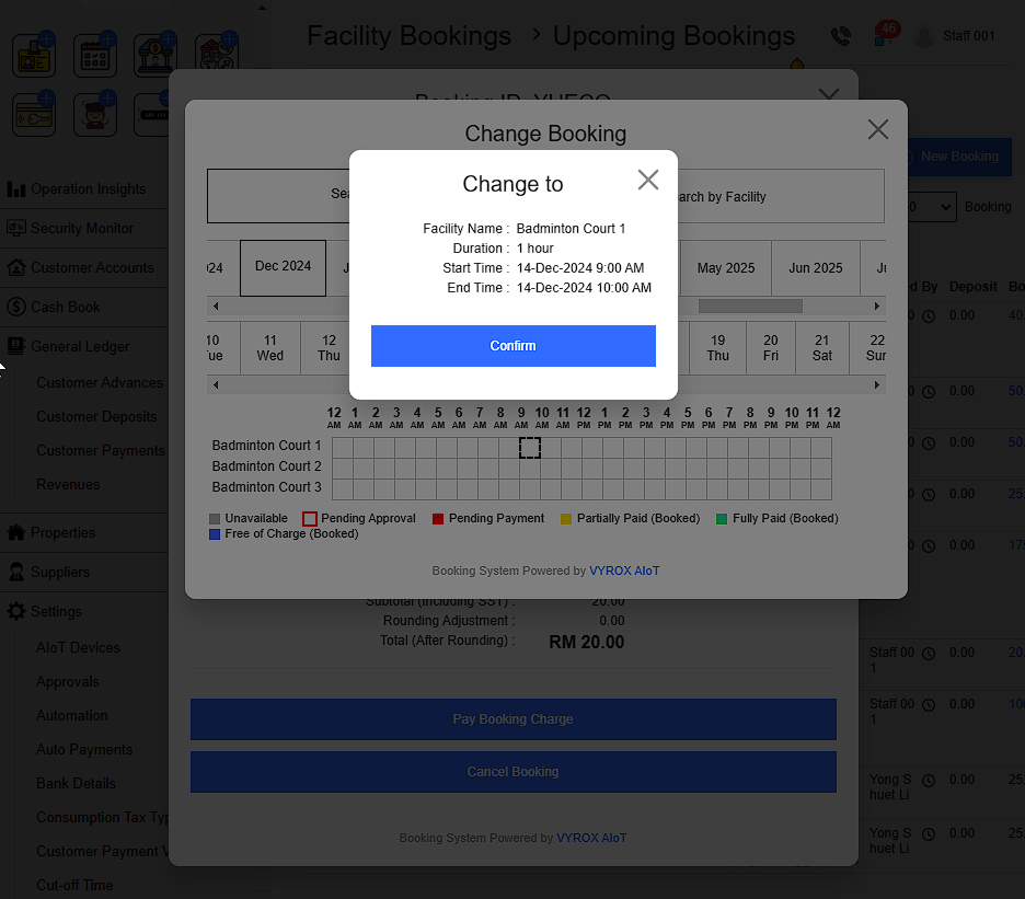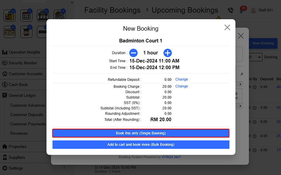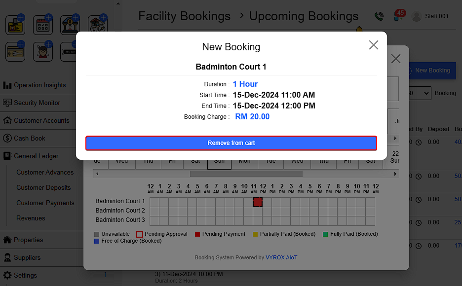 This means Customers cannot make further bookings through the user app once the limit is exceeded. However ,Staff are not restricted by these booking limits when processing customer bookings through the staff portal. If a customer exceeds the daily limit, a warning message will appear, but staff can still proceed with the booking.