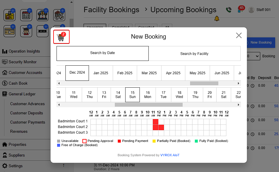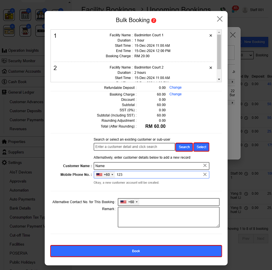 • Click Cart icon on the left > Fill in customer details > Click Book.
