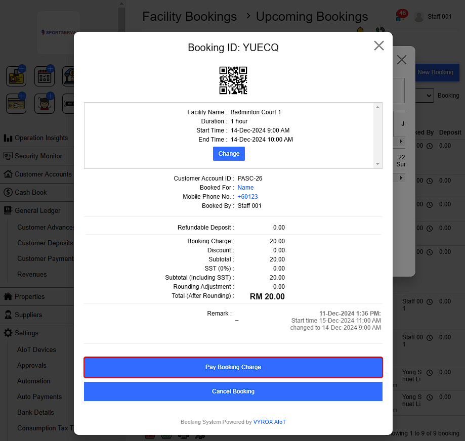 3.4. Change Court Booking Charge