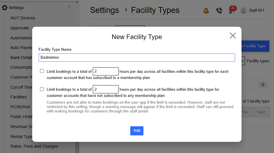 2.4. Fill in Details for Adding New Facilities