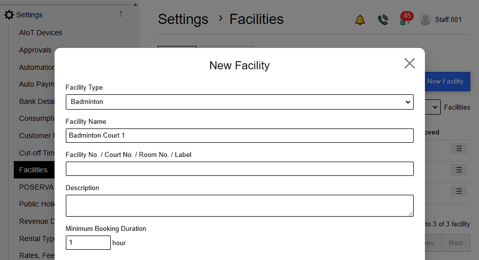 This feature enables you to add new facilities to the platform for user bookings.