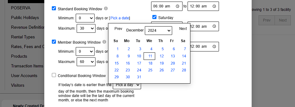2.8.1. Set Standard Booking Window