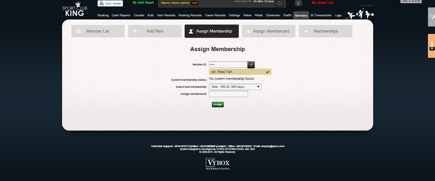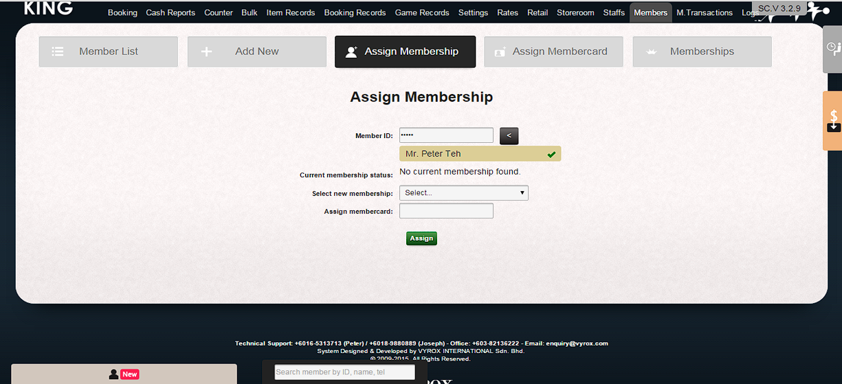 2. Then, “Assign Membership” page will pop up as follows.
