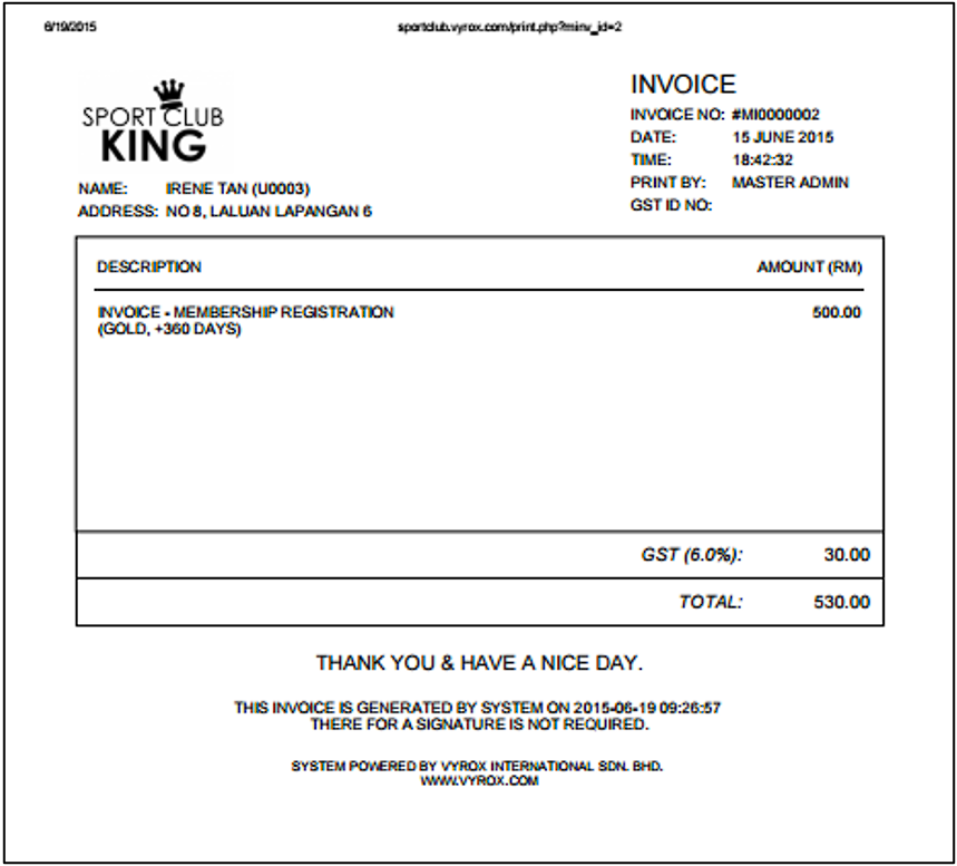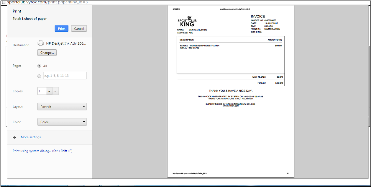3. Click “Print” to print an invoice to members.