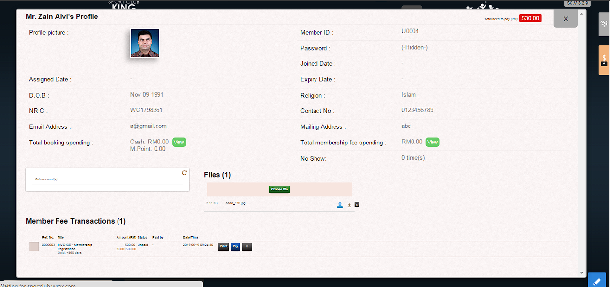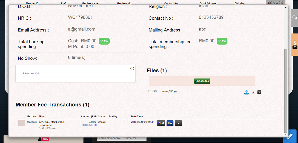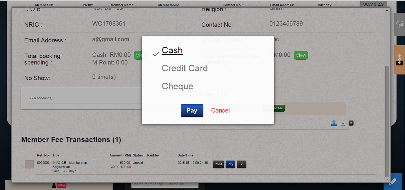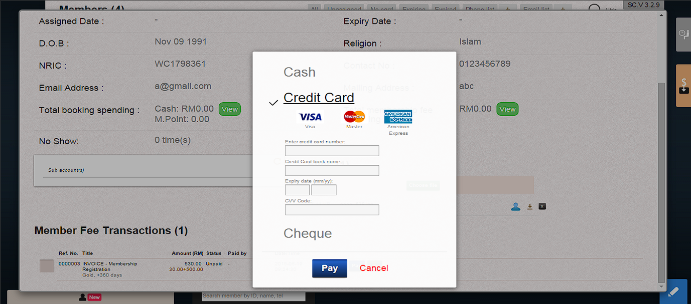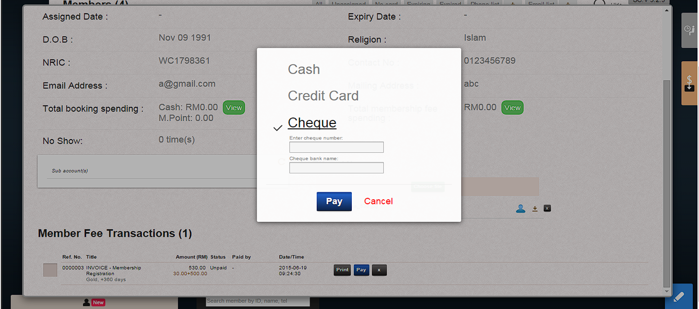 1. Click “Pay” to process member payment in “Member Fee Transaction” page.