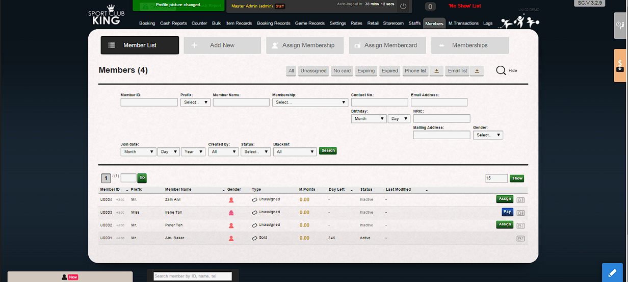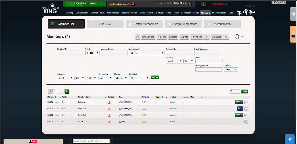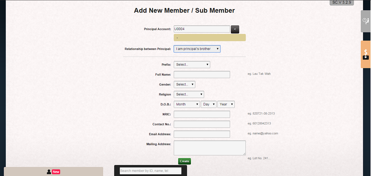 4. Member ID will be assigned automatically in sequence U0001, U0002, U0003, U0004, U0005 ……