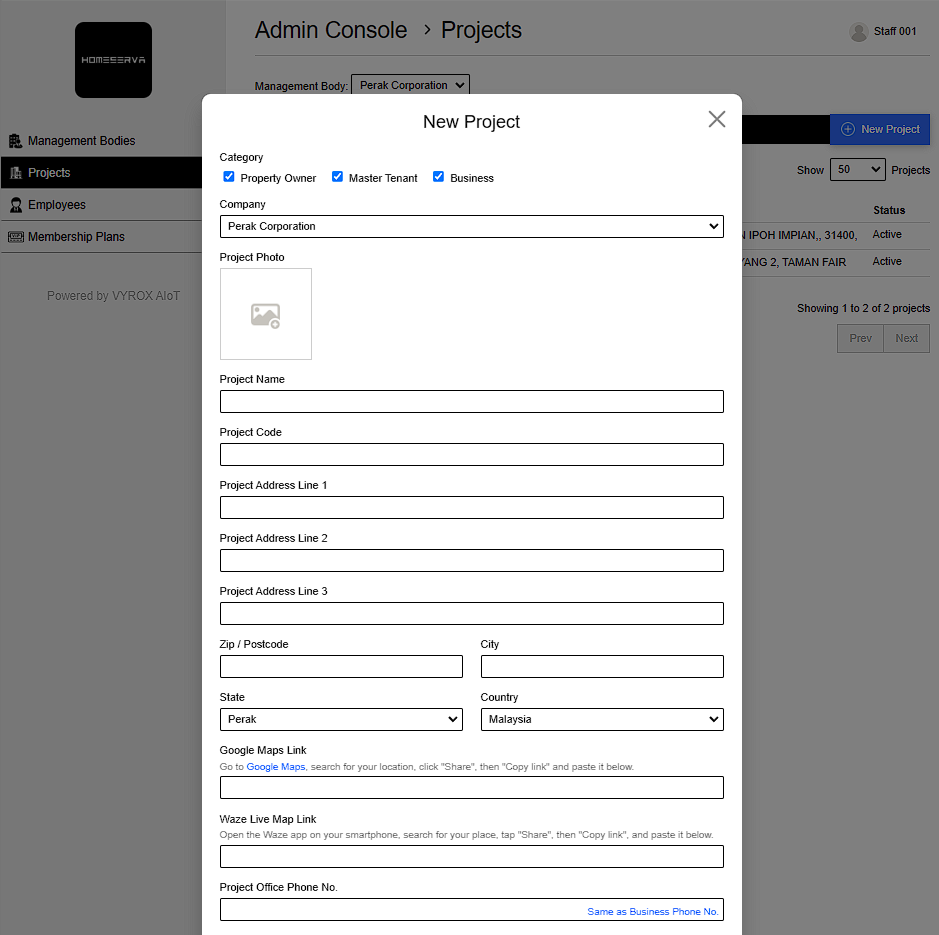 - Project Office Phone No. (Same as Business Phone No.)