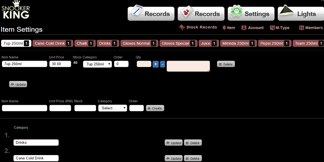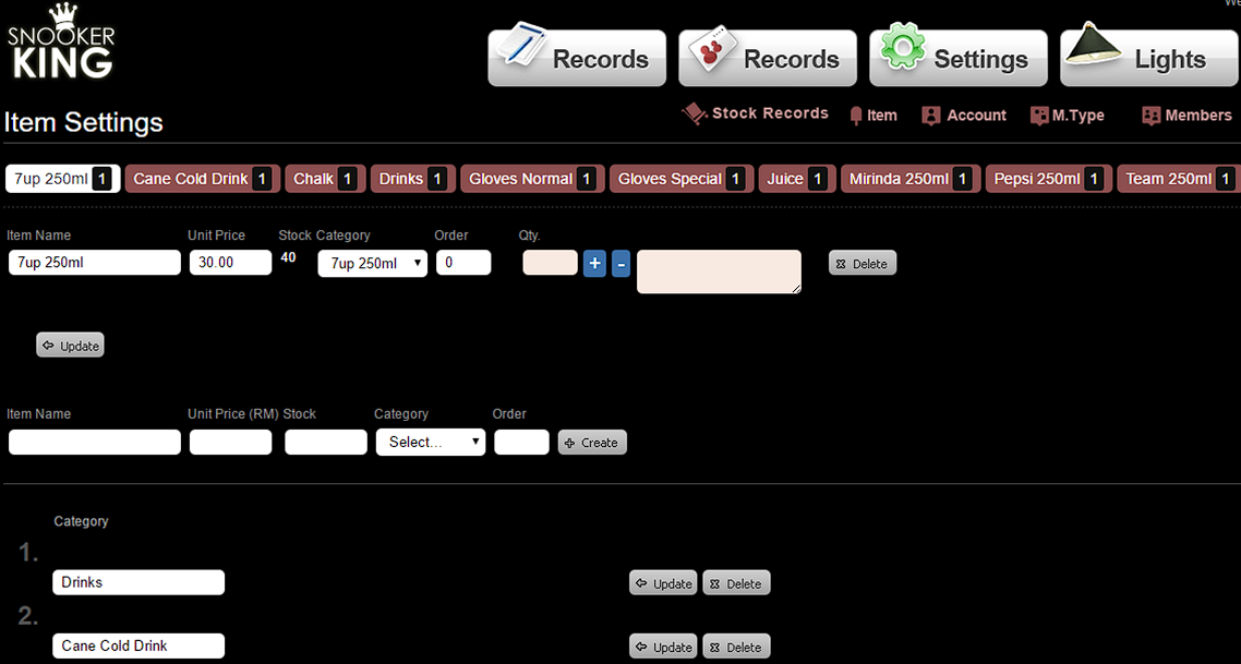 - Fill in Item, Price, Stock and select Category options.