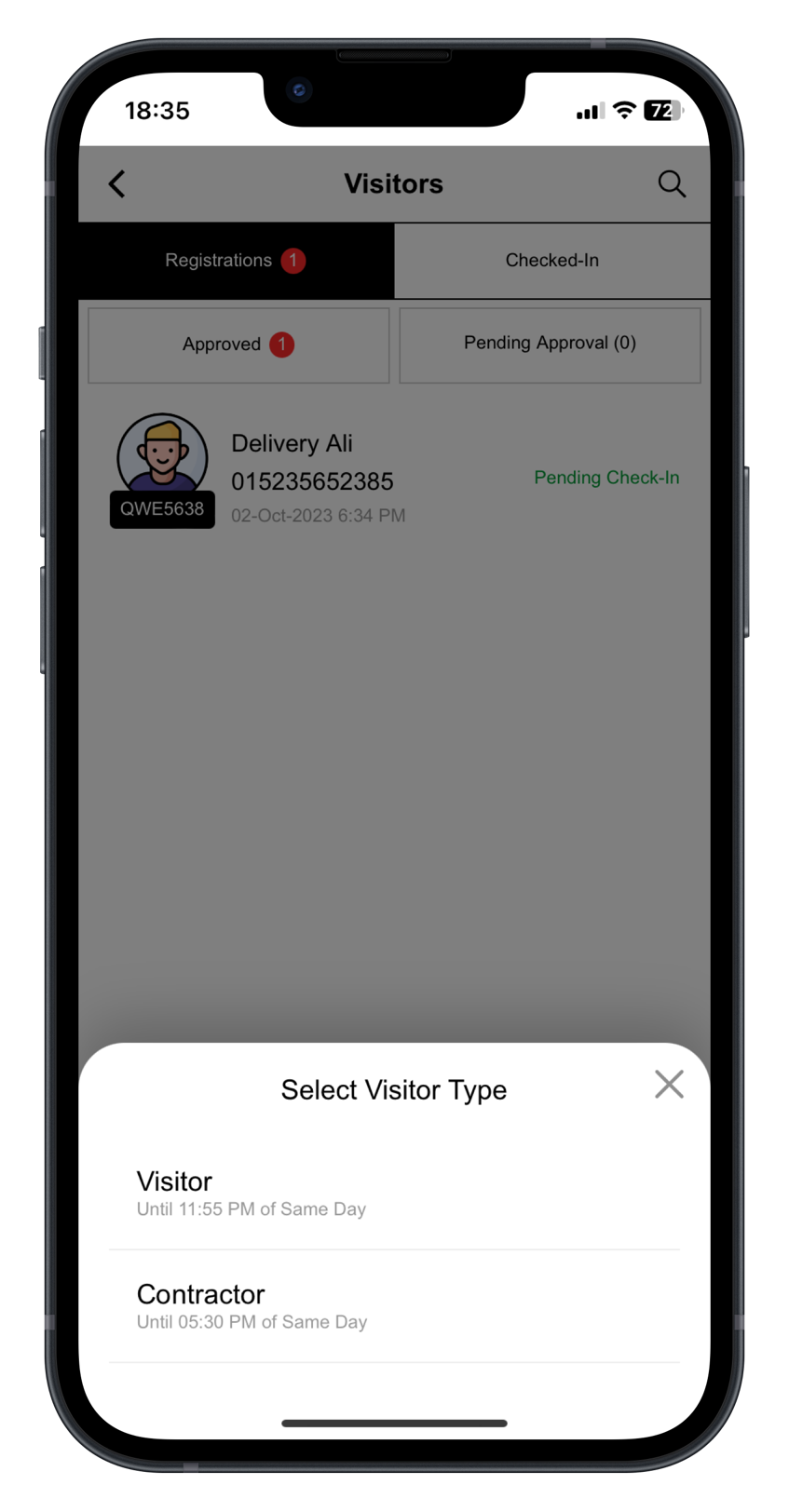Visitor access: Valid until 11.55 pm on the same day Contractor access: Valid until 5.30 pm on the same day